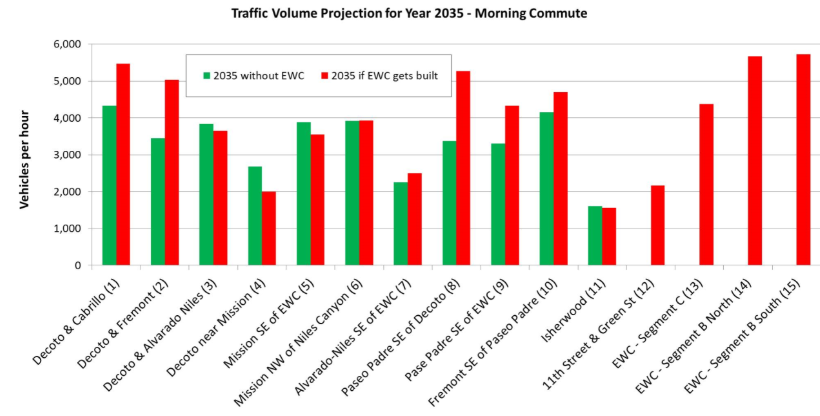 The East West Connector is projected to make Union City traffic worse not better. See Chart.