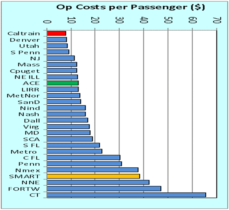 - At $1.50 per passenger mile and average passenger trip length of 25.6, SMART’s operating cost per passenger trip is $38.35, also in the bottom performance quartile of all commuter rail systems