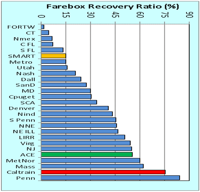 - For the fourth metric – average passenger fare – SMART ranks near the midpoint among USA commute rail systems